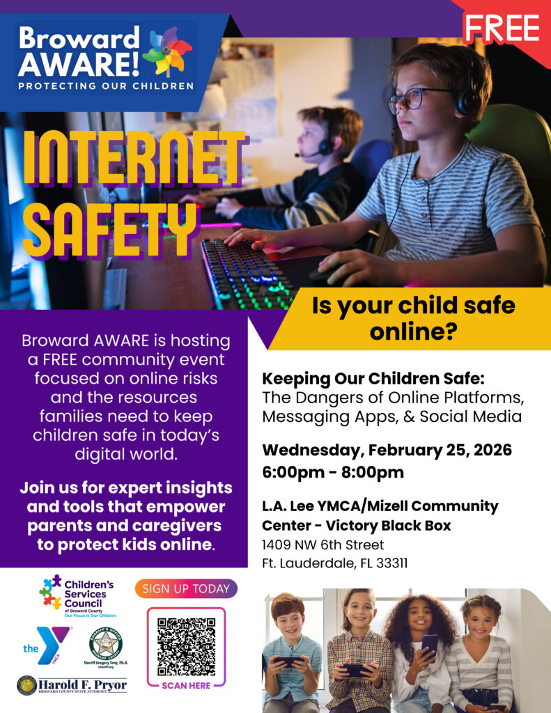 Broward AWARE! is a multi-agency campaign led by the Children’s Services Council of Broward County, dedicated to child abuse prevention through education, community engagement, and resource access. Running from January to April, the campaign addresses key issues each month: